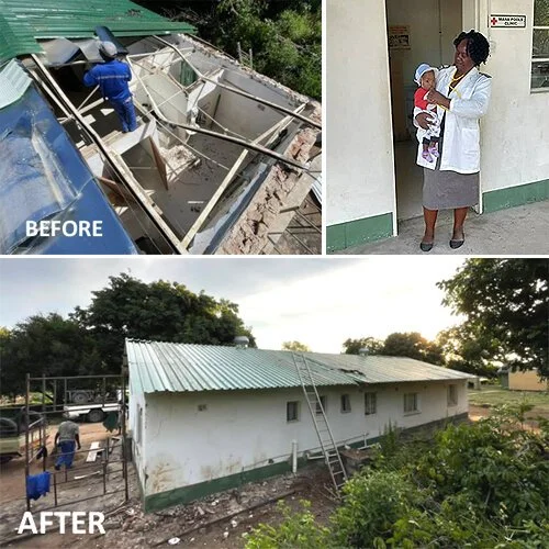 March 2021: The Zambezi Society assists ZimParks with repairs to the roof of the clinic in Mana Pools National Park.